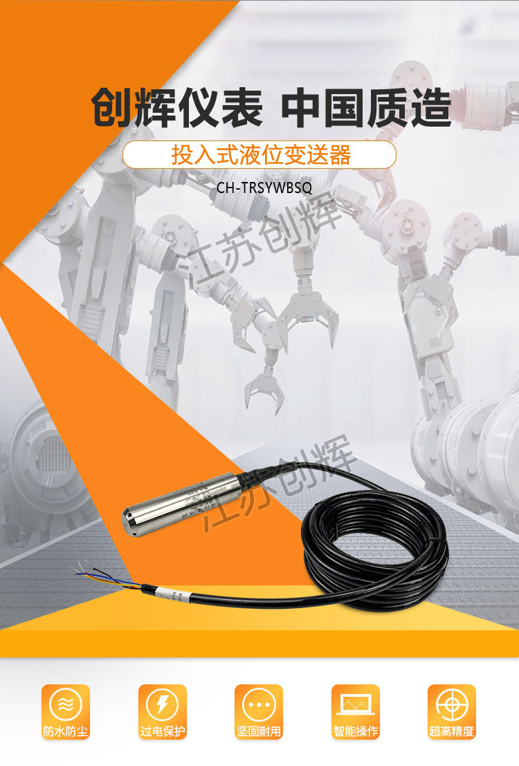 CH-TRSF系列防腐投入式液位變送器適用于石油化工、冶金、電力、制藥、供排水、環(huán)保等系統(tǒng)和行業(yè)的各種介質的液位測量。精巧的結構,簡單的調校和靈活的安裝方式為用戶輕松地使用提供了方便。4~20mA、0~5v、 0~10mA等標準信號輸出方式由用戶根據(jù)需要任選。
